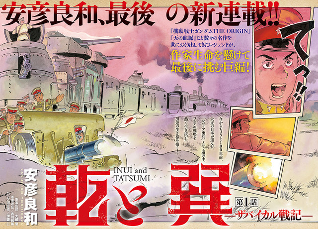 安彦良和がシベリア出兵をテーマに描く“最後の新連載”「乾と巽」アフタで始動 2018年9月25日2018年9月25日 editor 「乾と巽 ーザバイカル戦記ー」扉ページ。安彦良和の新連載「乾と巽 ーザバイカル戦記ー」が、本日9月25日発売の月刊アフタヌーン11月号(講談社)にてスタートした。 安彦の“最後の新連載”と銘打ちスタートした本作は、約100年前に起きたシベリア出兵を舞台に、砲撃の名手である陸軍軍曹・乾と新聞記者の巽という2人の青年を描く物語。ロシアの戦場を生きる男たちの生き様が描かれる。 また今号では白乃雪「あたりのキッチン!」が完結。最終4巻は10月23日に発売される。 関連記事「えんとつ町のプペル」窪田正孝がプペル役を続投 映画の公開日は3月27日アニメ「ジャングル大帝」放映60周年を祝した純金の記念コイン、価格は約55万円「ヴァンパイア騎士」樋野まつり直筆の原稿下絵をプレゼント、原画展開催記念「呪術廻戦」の虎杖悠仁、「サタプラ」で特級ウィンナーソーセージを大発表「NAKANOミューラル・アニメロード」誕生、東映アニメーション作品が中野の街を彩る「クローズ外伝 鳳仙花」8年の連載に幕 単行本の最終巻は来年1月発売 Tweet 関連コミック あたりのキッチン!