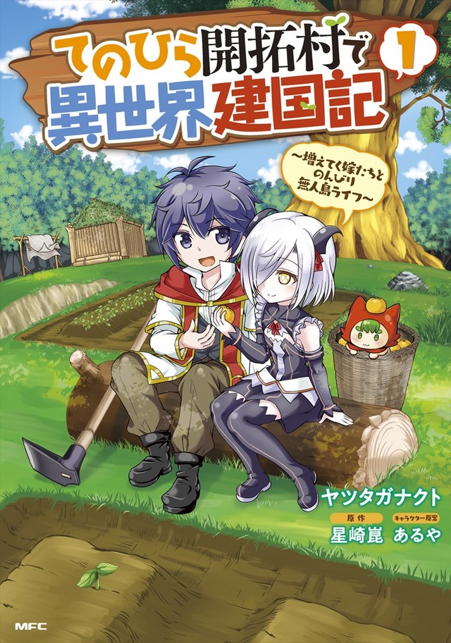 星崎崑原作によるヤツタガナクト「てのひら開拓村で異世界建国記~増えてく嫁たちとのんびり無人島ライフ~」1巻が発売された。