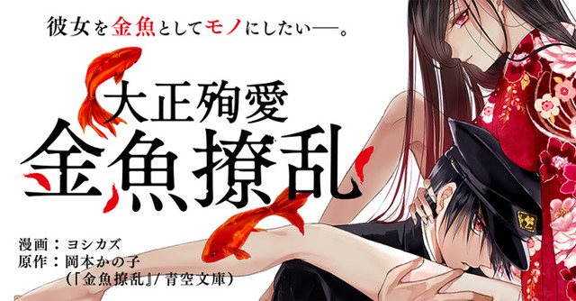 金魚屋の息子が抱く、お嬢さんへのゆがんだ征服欲「金魚撩乱」コミカライズ開始 2019年5月21日2019年5月21日 editor 「大正殉愛 金魚撩乱」バナーヨシカズによる新連載「大正殉愛 金魚撩乱」が、Cygamesのマンガ配信サービス・サイコミでスタートした。 同作は、岡本かの子による文学作品「金魚撩乱」をコミカライズしたもの。金魚屋の息子・復一と、同じ学校に通う店のお得意様の一人娘・真佐子の関係を描くサイコ・ラブストーリーだ。家が金魚屋をやっていることを復一は学校で馬鹿にされており、金魚が好きな真佐子に自分の苛立ちをぶつける。涙に濡れた真佐子の顔を見た復一の心に、ゆがんだ征服欲が生まれたことから物語は動き出す。 関連記事芸能人の幼なじみとの溺愛ラブコメディ「私の幼馴染はなにかおかしい」1巻おじいちゃん、ダンジョンで配信して!孫のために配信して大バズりする探索者の物語職も恋人も失いゴミ捨て場で御曹司に拾われる、庶民のシンデレラストーリー連載開始紫堂恭子「辺境警備」の秘められた前日譚描く「辺境警備 前史~銀のイリュージオ~」1巻世紀末の香港で、不死のヤクザを道士&刑事が追う!「香港ネクロポリス」1巻グルメマンガ「となりの宮廷料理人」2巻 特典にお出かけぴったりの撮影用カード Tweet 関連コミック 大正殉愛 金魚撩乱