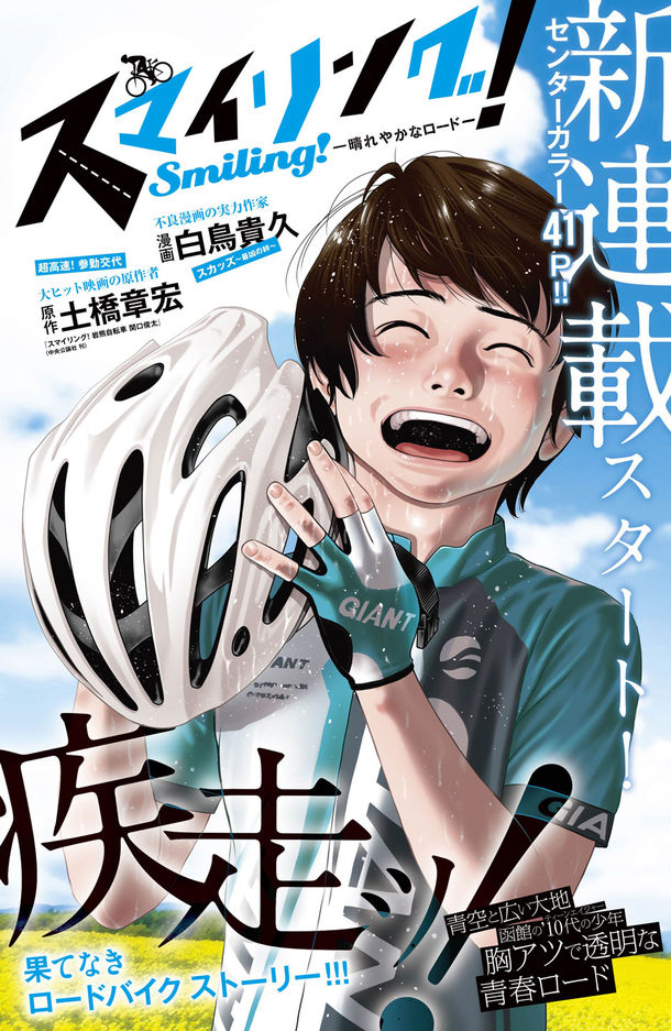 土橋章宏原作による白鳥貴久の新連載「スマイリング!~晴れやかなロード~」が、本日6月27日発売のヤングチャンピオン14号(秋田書店)にてスタートした。