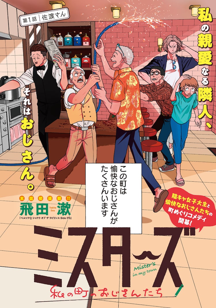 飛田漱の新連載「ミスターズ ~私の町のおじさんたち~」が、本日9月26日発売のモーニング、Dモーニング43号(講談社)にてスタートした。