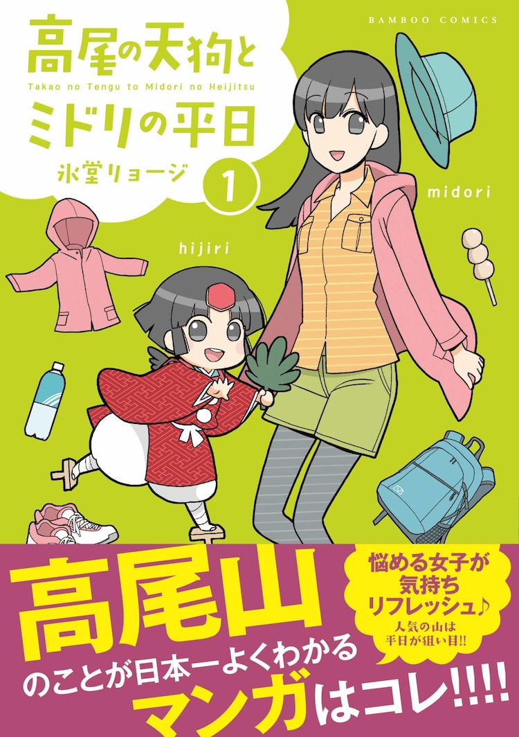 「高尾の天狗とミドリの平日」は、氷堂作品「高尾の天狗と脱・ハイヒール」のシリーズ作品。人にものを頼まれると断れない女子・三国ミドリは、ひょんなことから高尾山に住む天狗の子・聖と遭遇する。「もうムリせんでいいんぢゃよ?」と天狗の子に励まされたミドリは、すべてを自分で解決しようとする生き方を見直す。疲れたOLが高尾山に通ってリフレッシュし、天狗と交流しながら山の魅力に目覚めていく姿を描く。
