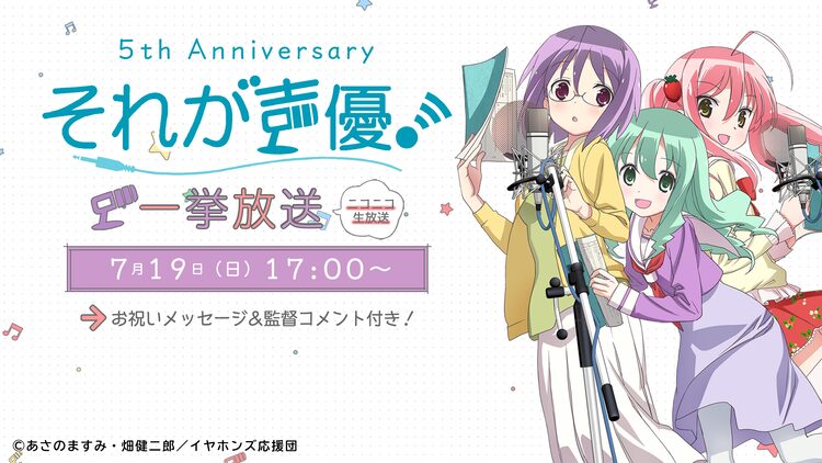 TVアニメ「それが声優!」の5周年を記念し、7月19日17時よりニコニコ生放送で同作の一挙配信が行われる。