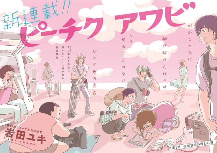 「ピーチクアワビ」はAV業界を舞台に描く青春群像劇。大学在学中に制作した映像作品が多くの賞を受賞した女性映画監督の望月キナコは、華々しく商業映画の世界にデビューするはずだったが、彼女が新たに制作した映画は酷評の嵐だった。第1話ではそんなキナコが映画の試写会でプロデューサーと揉め、暴行事件を起こしてしまう。映画監督としての顔も持つ岩田が描き出す映像業界のエピソードに注目しよう。