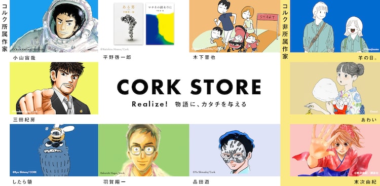 コルクストアはクリエイターのエージェント会社・コルクが運営するECサイト。所属作家には「宇宙兄弟」の小山宙哉や「シュガシュガルーン」の安野モヨコ、「ドラゴン桜」の三田紀房、「君たちはどう生きるか」の羽賀翔一らが名を連ねている。これまでは所属作家のみの商品企画を行ってきたが、新たに立ち上げたECサイトでは「物語に、カタチを与える」をコンセプトに、所属していない作家の商品も展開していく。