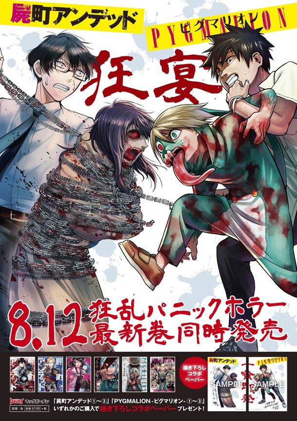 本日8月12日に磐秋ハル「屍町アンデッド」3巻と、渡辺千紘「PYGMALION-ピグマリオン」最終3巻が発売。これにあわせ「最狂ホラーマンガフェア」が全国107の書店で開催される。
