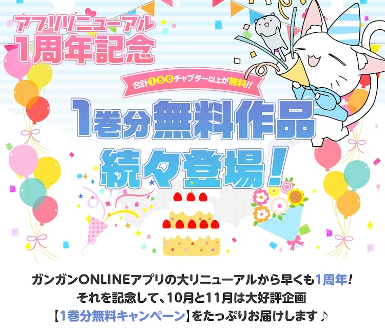 ガンガンONLINEのアプリにて、合計150チャプター以上が無料となる「1巻分無料キャンペーン」が展開される。