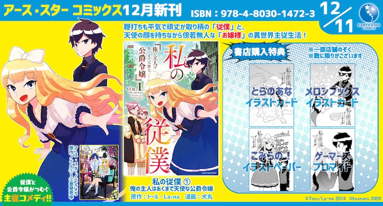 犬丸「私の従僕 俺の主人はあくまで天使な公爵令嬢」1巻が、本日12月11日に発売された。トールの小説を原作としたコミカライズ作品で、原作のイラストはLa-naが手がけている。