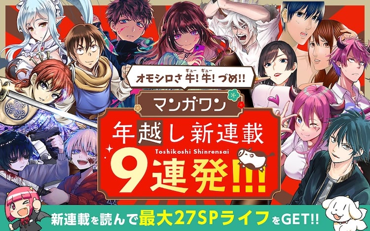 小学館のマンガアプリ・マンガワンでは、「オモシロさ牛(ギュー)!牛(ギュー)!づめ!! 年越し新連載9連発!」と題し、12月30日より9作品の新連載が続々展開される。