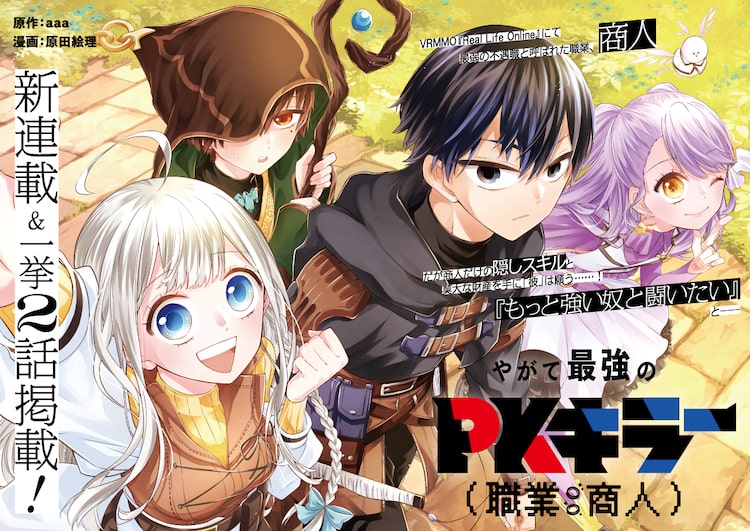 「やがて最強のPKキラー(職業:商人)」の主人公は、幼い頃から憧れていた職業・商人でVRMMOをプレイする男性・ニシキ。ゲーム「Real Life Online」で商人は「自分からは何も産み出さない」「寄生職」とほかのプレイヤーに蔑まれ、一緒にパーティを組んでもらえない不遇職となっていた。商人としてゲームを続けることに挫折しかけていた彼が、自分以外で商人をしているプレイヤーと久々に出会い、一緒にクエストに出かけたことから物語は動き出す。初回は一挙2話掲載。なお連載開始を記念して、コミカライズを手がける原田のTwitterアカウントでは第1話がまるごと公開される予定だ。