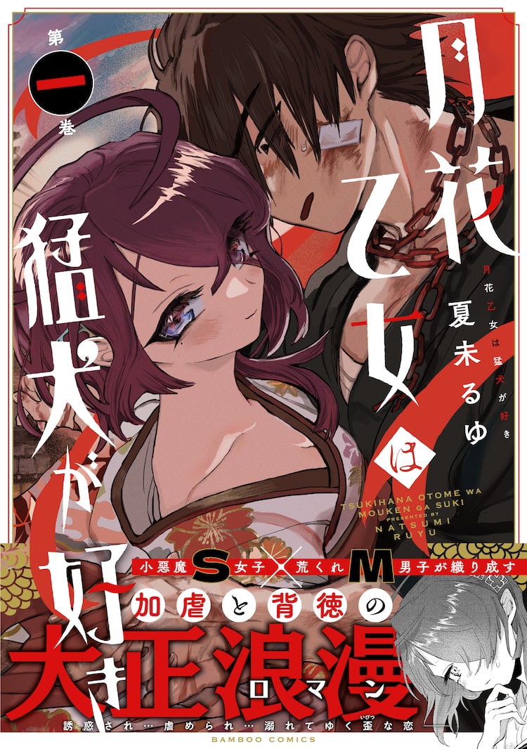 「月花乙女は猛犬が好き」は、大正末期を舞台に、小悪魔S女子と荒くれ者のM男子の関係を描いた歪な恋の物語。貧しい暮らしぶりで争い事をしょっちゅう起こしては近隣住民から煙たがられている青年・漆矢は、道端で義眼を落とした奇妙なお嬢様・花梨と出会う。花梨からの「犬になって」という頼みを断れなかった漆矢は、不本意ながらも彼女の淫靡な遊びに付き合う中で倒錯的な関係に溺れていく。