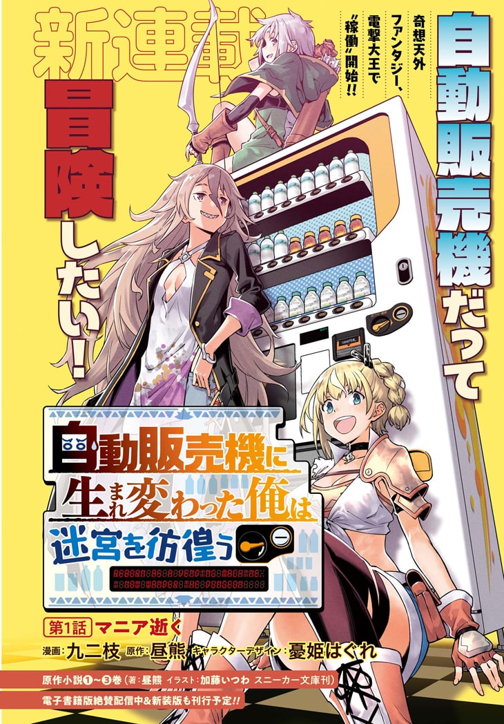 「自動販売機に生まれ変わった俺は迷宮を彷徨う」は、倒れそうな自動販売機を思わずかばって下敷きになり圧死した“自販機マニア”が、自動販売機の姿で異世界転生したことから始まるファンタジー作品。自販機になってしまった主人公は、電力の代わりに1時間で1ポイントを消費し、商品が売れないとポイントは増えない。第1話では、転生してから何日も経つのに人と出会えないことに焦りを感じていた主人公の前に、待望の客が現れる。