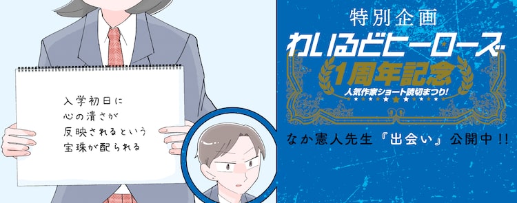 なか憲人が描く短編マンガがコミプレに、転校初日のおもしれー女と出会う 2021年9月10日2021年9月10日 editor 「出会い」バナーなか憲人の読み切り「出会い」が、本日9月10日にコミプレに掲載された。 「出会い」はとある学園の男子が、転校初日の「おもしれ~女」と出会うところから始まるショートコミック。同作はコミプレ内のレーベル・わいるどヒーローズの1周年を記念した「人気作家ショート読切まつり!」の第3弾として登場した。次回は散田島子の作品が掲載される。 関連記事「【推しの子】」パズルゲームのビジュアル公開、新規イラストやゲーム画面もひうらさとる「聖ラブサバイバーズ」来年1月ドラマ化!ハル役は石井杏奈、王子役は上田竜也神尾葉子が原作の新作アニメ「プリズム輪舞曲」来年Netflixで配信、主演は種﨑敦美新プリキュアは「名探偵プリキュア」キャッチフレーズは“そのナゾ!キュアット解決!”ドラマ「ながたんと青と」続編、新たな試練を感じさせる特報 久間田琳加ら続投タヤマ碧「ガールクラッシュ」TBSでTVアニメ化 日本初のK-POPアニメ Tweet