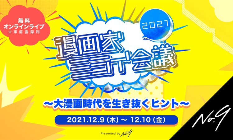 マンガ家に向けたオンライントークイベント「漫画家ミライ会議2021~大漫画時代を生き抜くヒント~」が、12月9日と10日の2日間にわたりZoomのウェビナー機能を使って開催される。参加には事前登録が必要で、料金は無料。