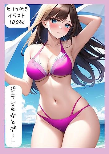 ビキニの美女と浜辺でデートするイラスト集(100枚)【セリフ付き】海・水着・ビーチ・砂浜