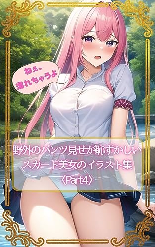 野外のパンツ見せが恥ずかしいスカート美女のイラスト集4 100枚・セリフ付き・ピンク髪の美少女と野外・川沿い・コテージデート スカート姿の美しい女性達を特集したイラスト