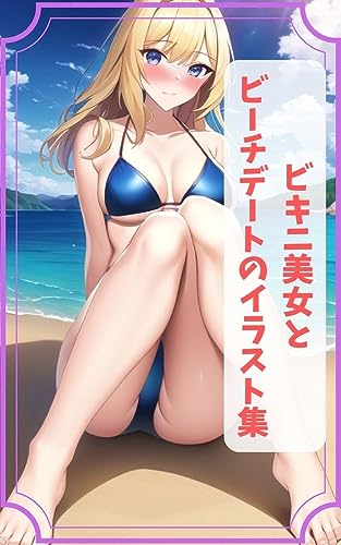 ビキニの美女とビーチデート!【セリフ付100枚】金髪の女性のイラスト集(海・夜・浜辺) ビキニ美女図鑑