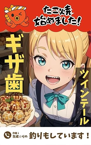 ギザ歯ツインテール、たこ焼き始めました!釣りもしています!: AIイラスト集サイレントマンガ風味