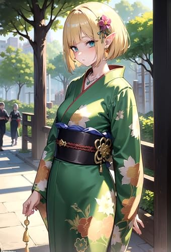 エルフさんは着物で街中を散歩する(CG集426枚)