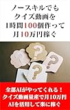 ノースキルでも 1時間100個作って クイズ動画で月10万円稼ぐ 全部AIがやってくれる! クイズ動画量産で月10万円を手に入れる! クイズ動画を使った簡単・確実な月10万円の稼ぎ方 AIを活用して楽に稼ぐ アフィリエイトプロダクション