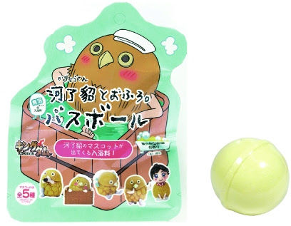 マスコットは蓑を被ってポーズを決める貂を立体化した全5種類をラインナップ。バスボールに包まれており、入浴剤が溶けるとカプセルに入ったマスコットが登場する。価格は1つ540円。