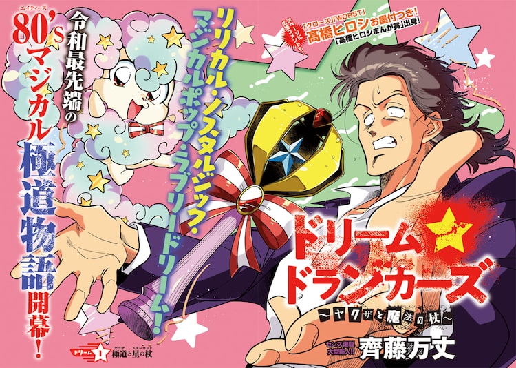 齊藤万丈の新連載「ドリーム☆ドランカーズ ~ヤクザと魔法の杖~」が、本日11月23日発売の電子雑誌・どこでもヤングチャンピオン12月号(秋田書店)でスタートした。