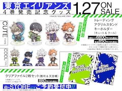 新グッズは2種類制作され、単行本発売日と同じく1月27日に発売となる。トレーディングアクリルスタンドキーホルダーはNAOEの描き下ろしイラストを使用したキュートタイプと、単行本収録イラストを用いたクールタイプの計8種が登場。クリアファイル2枚セットには12月18日発売の月刊Gファンタジー2022年1月号(スクウェア・エニックス)に掲載される「東京エイリアンズ」のセンターカラーイラストが使用された。絵柄はGファンタジー1月号で確認しよう。なおこれらの新規グッズは、スクウェア・エニックス公式通販サイトのe-STOREで予約を受け付けている。