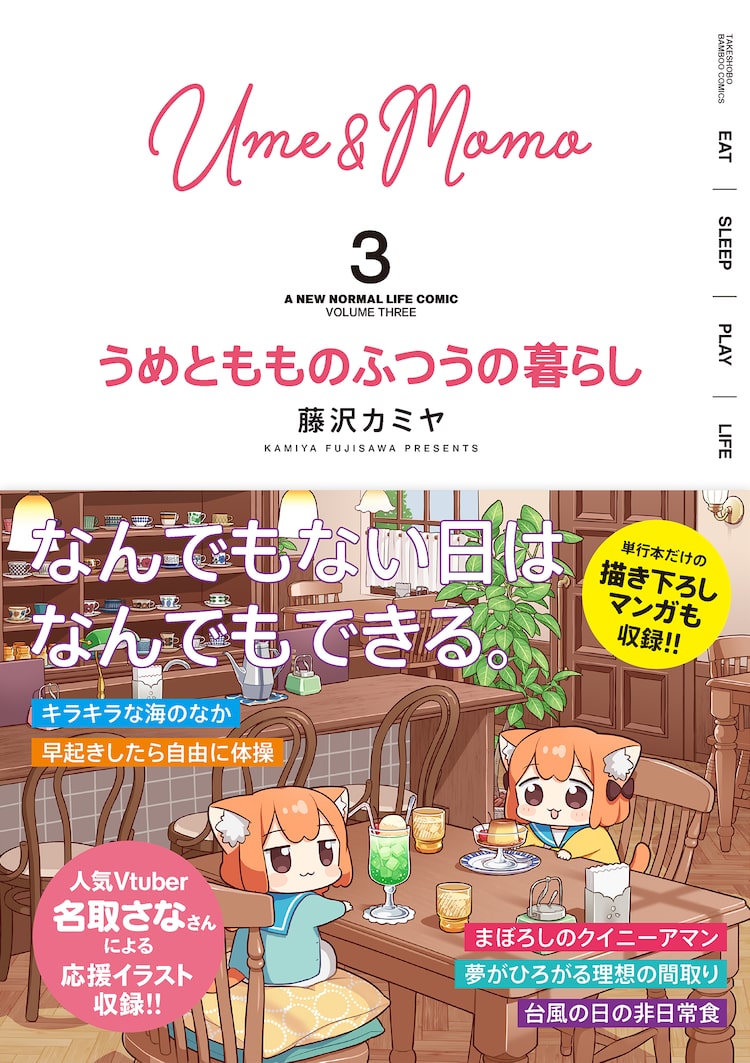 藤沢カミヤ「うめともものふつうの暮らし」3巻、名取さなとのコラボ企画も実施
