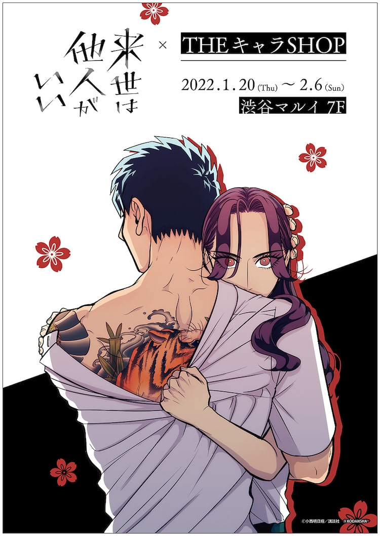 月刊アフタヌーン(講談社)で連載中の「来世は他人がいい」は、極道の家で生まれ育った女子高生・染井吉乃と、その婚約者・深山霧島によるラブストーリー。同作初となる期間限定ショップでは描き下ろしイラストを用いた商品が販売されるほか、イラストの展示、オリジナルグッズが当たるくじも展開される予定だ。
