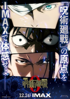 IMAX上映は通常の劇場公開に加え、合計418館で実施。またIMAX版のビジュアルは、主人公である乙骨憂太、最強の呪術師・五条悟、最大の敵であり最悪の呪詛師・夏油傑の3人の目元にフィーチャーしたデザインに仕上げられた。「劇場版 呪術廻戦 0」は12月24日に全国公開される。