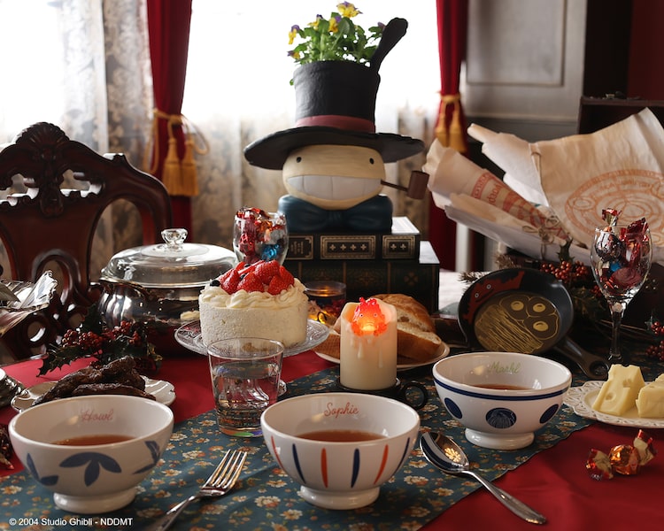 ハウル城でベーコンエッグを作る食事のシーンに登場したお椀を再現したスープボウル、劇中のセリフ「美味し糧を!(Our dairy bread!)」が刻まれたスプーンとフォーク、透かすと少年ハウルとソフィーが1枚の絵のように重なるグラスなどをラインナップ。またカルシファーの炎が揺らめくキャンドル型のLEDライト、カルシファーとベーコンエッグがプリントされた萬古焼の陶器プレートといったアイテムも揃えられた。