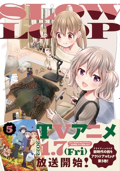 「スローループ」は、亡き父に教えてもらったフライフィッシングを嗜む少女・ひよりが、母親の再婚相手の娘・小春と出会い、一緒に釣りをする様子を描いたガールズストーリー。5巻では、冬の太平洋でヒラメ釣りを挑戦したり、キジの狩猟を見学したりと2人が新しいことにチャレンジしていく。まんがタイムきららフォワード(芳文社)にて連載中で、12月24日発売の同誌2022年2月号には単行本5巻のかけ替えカバーが付いてくる。