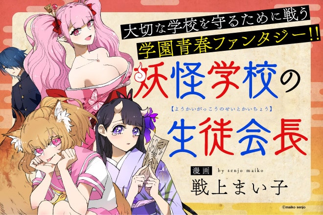 戦上まい子の新連載「妖怪学校の生徒会長」が、ComicWalkerでスタートした。