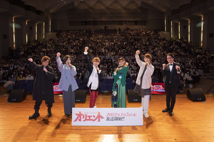 これは本日12月12日に開催された先行上映イベント「TVアニメ『オリエント』出陣式」で伝えられたもの。イベントには武蔵役の内田雄馬、鐘巻小次郎役の斉藤壮馬、服部つぐみ役の高橋李依、武田尚虎役の日野聡、小雨田英雄役の羽多野渉が出演し、第1話・第2話が先行上映されたほか、キャストトーク、本編中のシーンを再現するミニコーナーなどが行われた。併せて3人のキャラクタービジュアルと小西のコメントも到着した。