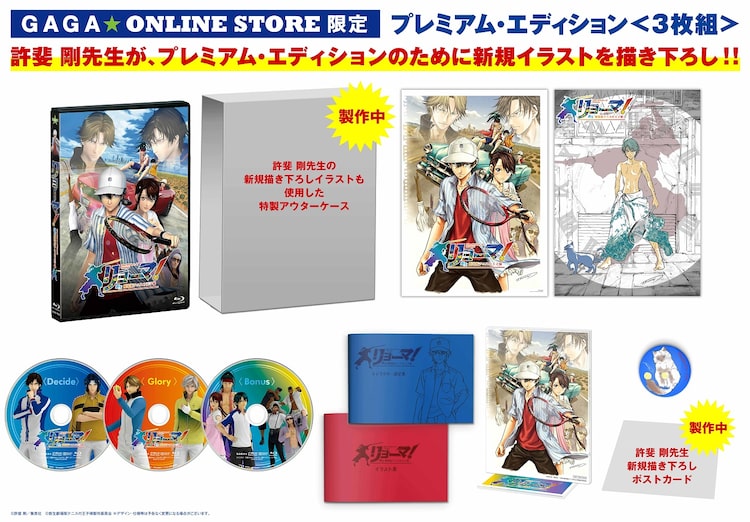 またプレミアムエディションには、許斐による新規描き下ろしポストカードやそのイラストを使用したクリルスタンド、ポスターも特典として付属。さらにエンドロールの描き下ろしイラストを収録したイラスト集、劇中登場の猫の缶バッジ、キャラクター設定集もラインナップされた。なおプレミアムエディションはGAGA★ONLINE STORE限定販売となるのでご注意を。