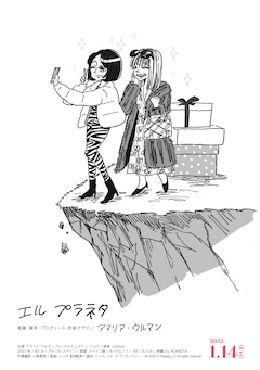 2022年1月14日に公開される「エル プラネタ」。ロンドンでの学校生活を終えた駆け出しスタイリスト・レオが、生まれ故郷であるスペインの田舎町に帰ってくるところから物語は始まる。破産寸前になっていた母親マリアと崖っぷちの状況に追い込まれながらもSNS映えするスタイリッシュな暮らしを目指していたある日、レオはチープな雑貨屋でイケメン店員と出会い……。世紀末のイラストには、文字通りの崖っぷちに立って自撮りをしているレオとマリアの母娘が描かれた。また「日本版イラストビジュアル」はもう1種類公開されており、こちらはイラストレーターのWALNUTが手がけている。