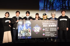 TVアニメ「トライブナイン」の完成披露宴が本日12月22日に東京・秋葉原UDXシアターにて開催。白金ハル役の堀江瞬、有栖川さおり役の渕上舞、青木悠監督、原案の小高和剛氏、応援大使を務めるえなことつんこが出席した。