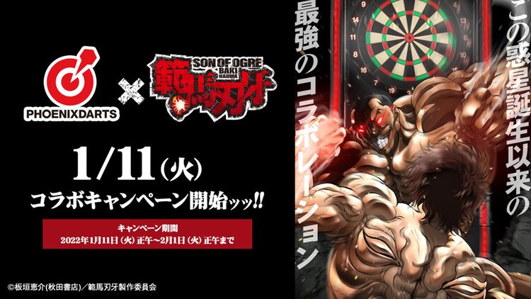 板垣恵介原作によるアニメ「範馬刃牙」とダーツマシン・PHOENIXDARTSのコラボが決定した。