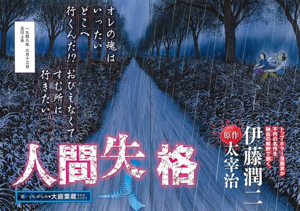 ビッグコミックオリジナル(小学館)にて連載中の「人間失格」は、人とうまく付き合えず、幼い頃から道化を演じてきた男の人生を綴った、太宰治による小説を原作とした物語。「富江」シリーズや「うずまき」など、ホラーマンガ家として知られる伊藤が、独自の解釈でマンガ化している。