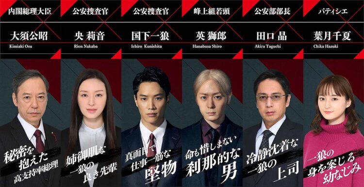 萩原が演じるのは、一狼の幼なじみでもあるパティシエ・葉月千夏。前原はある秘密を抱える医師・澤口実を演じる。キャラクタービジュアルには鈴木伸之演じる公安捜査官の一狼、犬飼貴丈演じるヤクザの若頭・獅郎、栗山千明演じる一狼の先輩公安捜査官・莉音、徳井義実演じる公安部長・田口、板尾創路演じる総理大臣・大須、萩原演じる千夏が並んだ。
