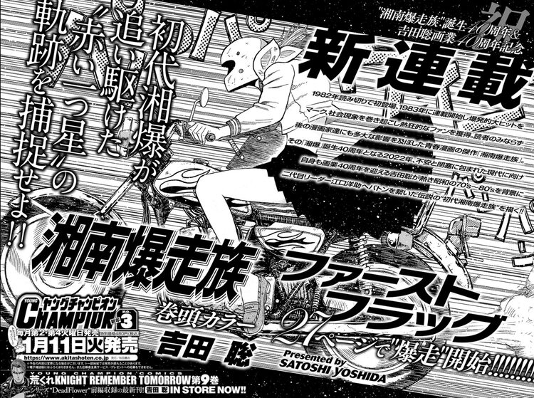 「湘南爆走族」の誕生40周年と、作者の吉田聡の画業40周年を記念し、2022年1月11日発売のヤングチャンピオン2022年3号(秋田書店)では、新連載「湘南爆走族 ファーストフラッグ」が開幕する。
