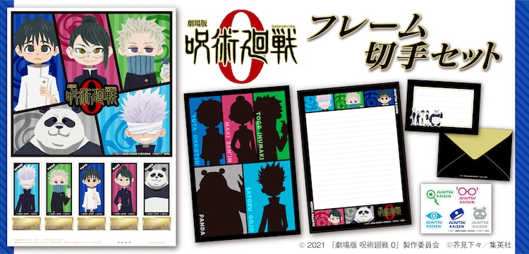 「劇場版 呪術廻戦 0」がフレーム切手に、乙骨たちをデフォルメしてデザイン 2022年1月4日2022年1月4日 editor 「『劇場版 呪術廻戦 0』フレーム切手セット」の内容。芥見下々原作による映画「劇場版 呪術廻戦 0」の公開を記念したフレーム切手セットが、明日1月5日より郵便局のネットショップ限定で販売される。 セット内容はフレーム切手、レターセット、切手台紙がそれぞれ1つずつ。デフォルメされた乙骨憂太、五条悟、禪院真希、狗巻棘、パンダの描き下ろしイラストがデザインされている。価格は税込3400円。商品は3月9日より順次届けられる。 (c)2021「劇場版 呪術廻戦 0」製作委員会 (c)芥見下々/集英社 関連記事「チェンソーマン レゼ篇」特典第1弾の小冊子を再配布、表紙に小学生のデンジ&レゼ舞台「鬼滅の刃」新作「其ノ陸 柱稽古」、来年6月上演 炭治郎役は阪本奨悟&髙橋颯三津田信三の小説「首無の如き祟るもの」コミカライズ、MAGKANで開幕アーニャたちが雪遊び!TOHO animation「ジャンプフェスタ」出展に向けたイラスト「スキップとローファー展」ペンキまみれなみつみと志摩の新ビジュアル、展示内容も豚タン定食ってこんな味かぁ…チェンソーマン×やよい軒、対象商品食べて特典もらえる Tweet