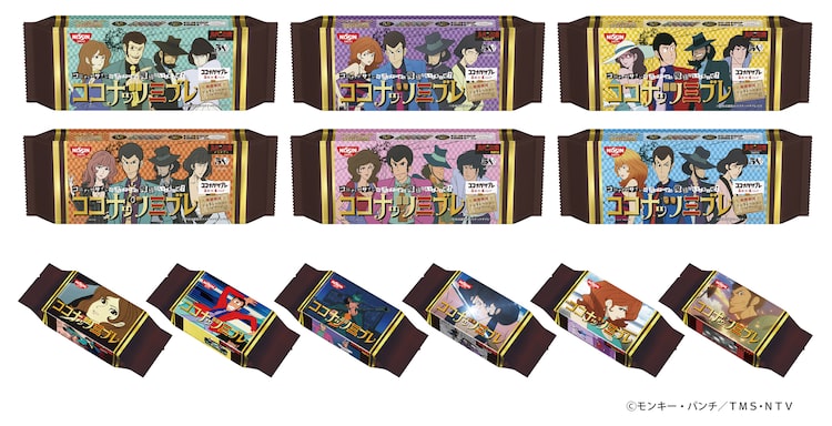 1965年に発売された、サクサクした食感が楽しめるビスケット「ココナッツサブレ」。「ココナッツサブレ ルパン三世 コラボパッケージ」の外装は、TVアニメ「ルパン三世」のPART1からPART6までをモチーフにした全6種類が展開される。また中の小分けパックは、TVシリーズに登場する歴代キャラクターをプリントした全25種類が用意された。