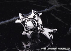 アクセサリーはキャラクターごとにイヤリング、ピアス、リングを展開。マシュのアクセサリーは、彼女の持つ盾がデザインに落とし込まれた。イヤリング、ピアスにはシルバー925製が採用され、重厚感のある仕上がりに。ロマニのイヤリングとピアスには、ロマニの瞳の色を想させる緑の石があしらわれ、先端にはカルデアのロゴと制服のチャームが取り付けられた。魔術王ソロモンのイヤリングとピアスは彼の紋章と指輪を組み合わせた存在感のあるデザイン。リングの一部には、アクセントとして模様が刻印された。価格は税込各1万6500円。商品はオリジナルBOX付きで、5月下旬に届けられる予定だ。