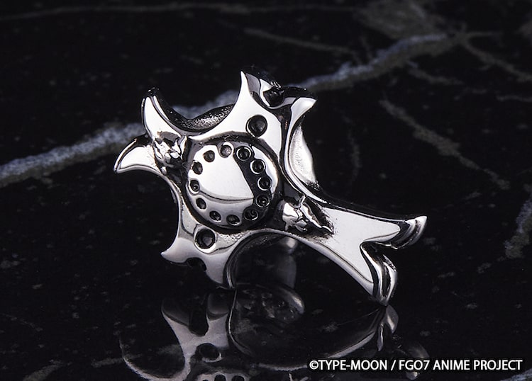 アクセサリーはキャラクターごとにイヤリング、ピアス、リングを展開。マシュのアクセサリーは、彼女の持つ盾がデザインに落とし込まれた。イヤリング、ピアスにはシルバー925製が採用され、重厚感のある仕上がりに。ロマニのイヤリングとピアスには、ロマニの瞳の色を想させる緑の石があしらわれ、先端にはカルデアのロゴと制服のチャームが取り付けられた。魔術王ソロモンのイヤリングとピアスは彼の紋章と指輪を組み合わせた存在感のあるデザイン。リングの一部には、アクセントとして模様が刻印された。価格は税込各1万6500円。商品はオリジナルBOX付きで、5月下旬に届けられる予定だ。