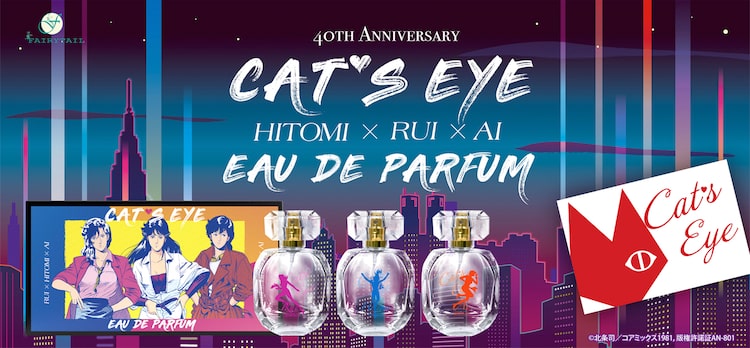 北条司「キャッツ♥アイ」の連載40周年を記念し、瞳、泪、愛の3姉妹をイメージした香水セットが予約販売される。