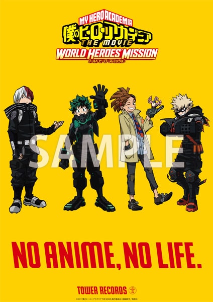 また描き下ろしイラストを使用したグッズも期間限定で販売。さらにBlu-ray / DVD店着日の2月15日から全店で、「僕のヒーローアカデミア THE MOVIE ワールドヒーローズミッション × NO ANIME, NO LIFE.」のコラボキャンペーンが行われ、コラボポスターの掲示や店内放送などが実施される。