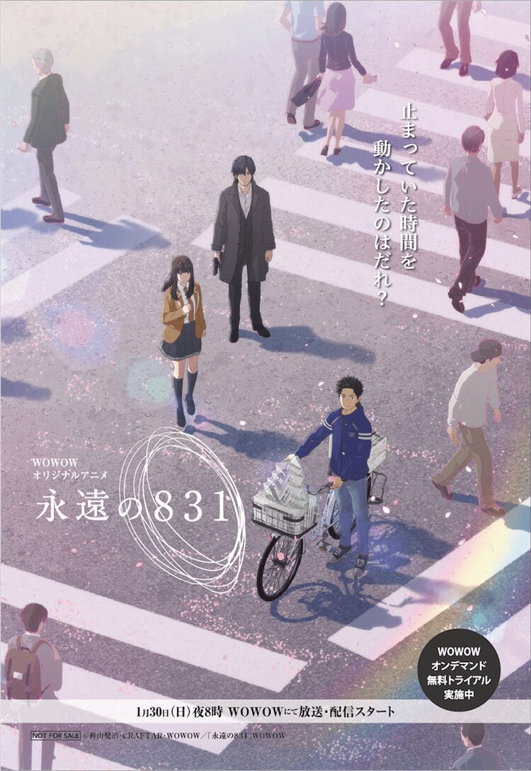 「永遠の831」の舞台は、“未曾有の大災厄”により混迷を極める現代の東京。自分ではコントロールできない“時間を止める力”を持つ青年・浅野スズシロウ、同じ“力”を持つ少女・橋本なずな、なずなの異母兄で半グレ集団“831戦線”の中心人物・亜川芹を軸に物語が展開される。スズシロウに斉藤壮馬、なずなにM・A・O、亜川に興津和幸が声を当てた。
