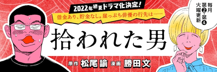 「拾われた男」は、俳優を志して上京した兵庫県尼崎生まれの24歳・マツオが主人公。「役者は食えない仕事」と言われながらも、劇団のオーディションを受けながらバイトする日々を送っていたマツオは、ある日、自動販売機の下に落ちていた航空券を拾って……。同作は毎月第2・4火曜日に更新される。