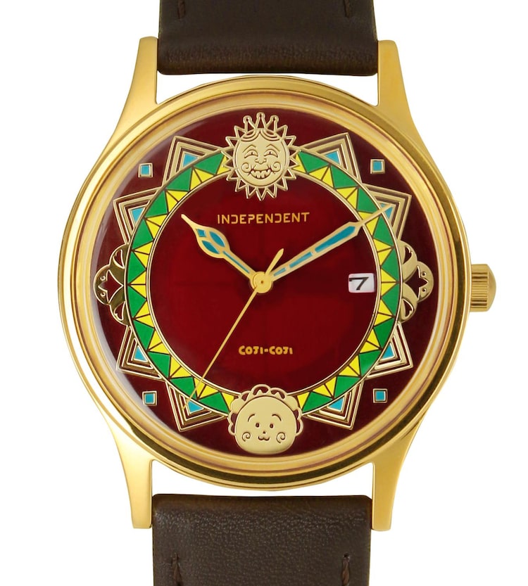 原作イラストをイメージして、アンティーク調のデザインに仕上げられたこのアイテム。文字盤の12時の位置にはゲラン、6時の位置にはコジコジがレイアウトされている。裏ぶたにはコジコジと作品ロゴ、INDEPENDENTのブランドロゴを刻印。ベルトにはステッチを施したブラウンのカーフベルトが採用された。